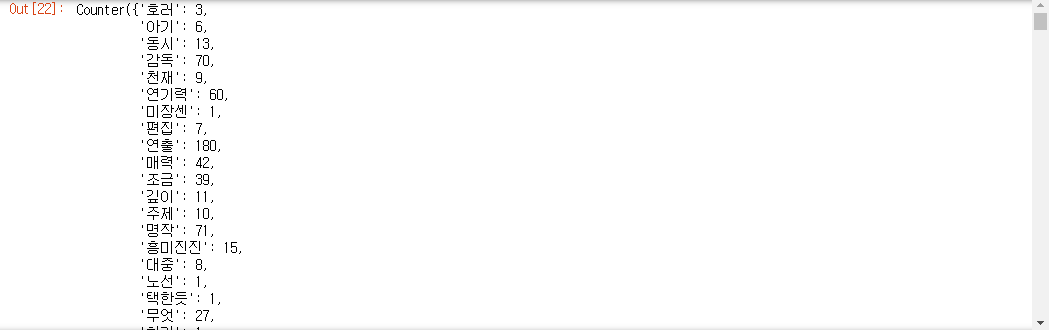 그리고 해당 단어들에 대한 빈도 수를 계산합니다.