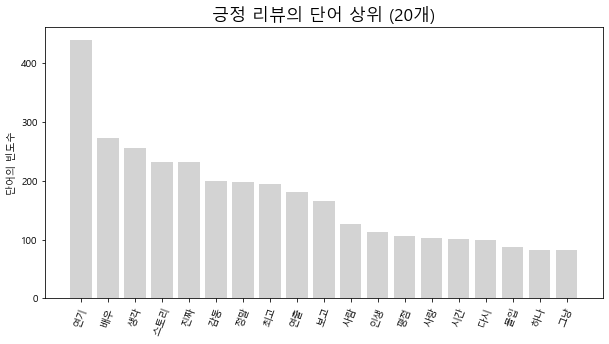 긍정 리뷰에 대한 단어 추출이 바르게 처리되었는지 해당 코드로 확인합니다.