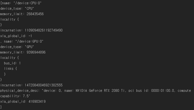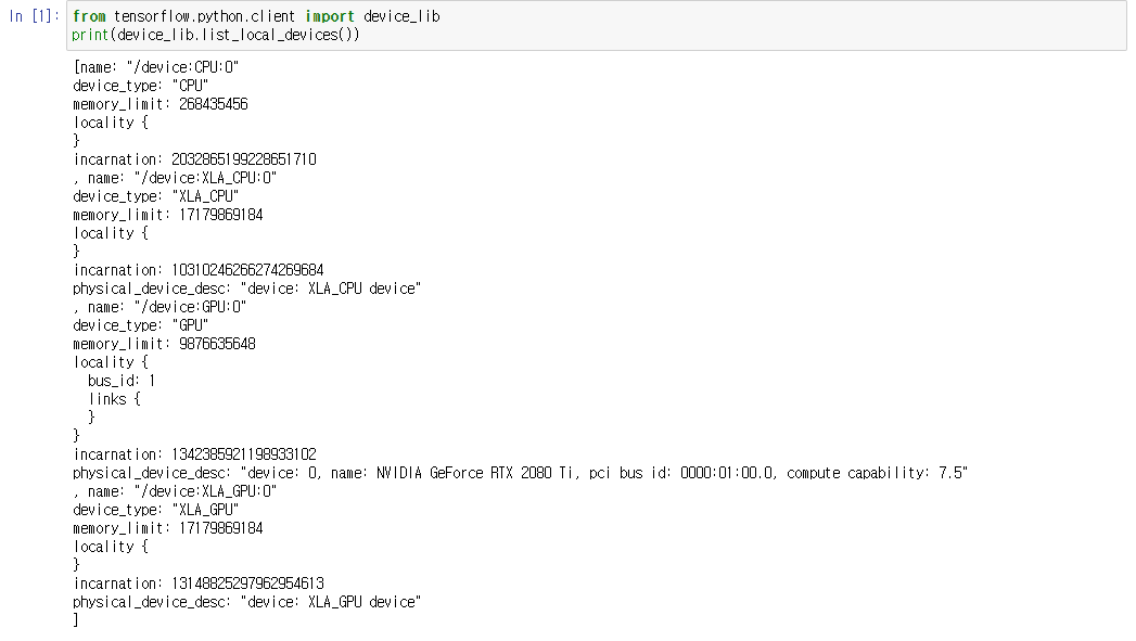해당 출력을 얻었으면 설치는 마무리 되었고 이제 코드를 통해 GPU와의 연동이 되었는지 확인합니다.