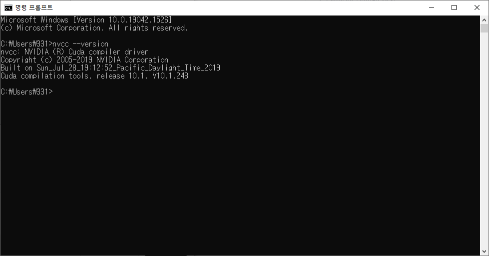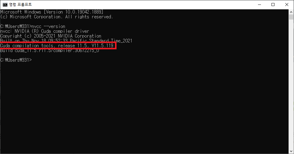 CUDA의 정상 설치 확인은 cmd창에서 다음의 명령어로 확인해볼 수 있습니다.