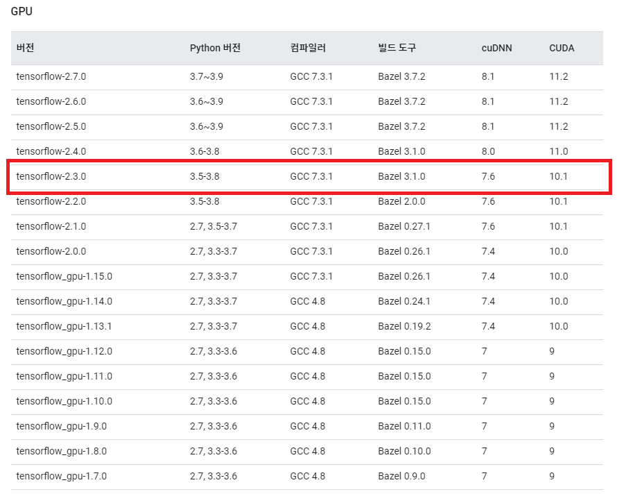 pip install tensorflow==2.3.0 #-- 본인의 개발환경에 맞게 버전 변경할 것