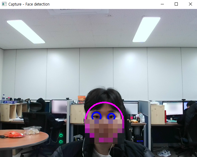 캠 화면의 얼굴도 어느 정도 잘 인식하는 듯합니다.