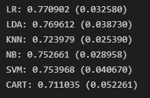 models.append(('LR', LogisticRegression(max_iter=1000)))